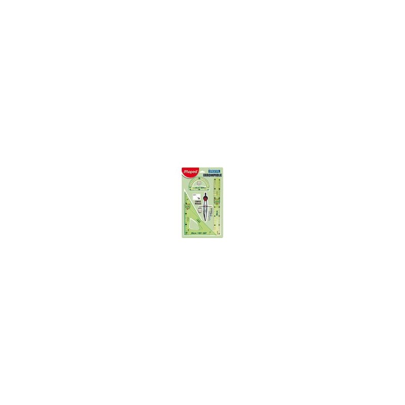 JUEGO DE GEOMETRÍA ALTAMENTE DURABLE EN CONDICIONES DE USO NORMALES. INCLUYE ESCUADRAS 26CM COMPÁS DE PRECISIÓN TECHNICOLOR, GOMA, REGLA 30CM BIGRADUADA